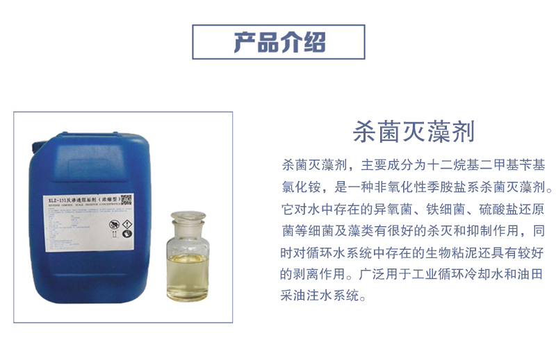 ▲ 杀菌灭藻剂YF-12具有高效、广谱、低毒、药效快而持久、渗透力强、使用方便、适用的温度和pH范围较宽等优点,适用于电厂、化工、化肥、炼油、冶金等工业循环冷却水系统作杀菌灭藻和粘泥剥离剂使用。