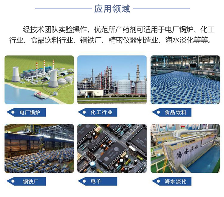水处理药剂广泛应用于化工、石油、轻工、日化、纺织、印染、 建筑、冶金、机械、医药卫生、交通、城乡环保等行业,包括废水和污水处理、冷却水和锅炉水的处理、海水和苦咸水淡化、膜分离、生物处理、絮凝和离子交换等技术所需的药剂。
